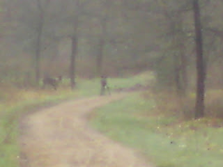 Vandaag geen ree gezien; alleen een man met fiets aan de hand... midden in het bos. Vreemd. Ik had het boek "in het bos zijn de wilde dieren" beter niet kunnen lezen geloof ik. Niet goed voor mijn rijke fantasie...