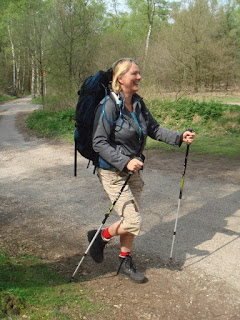 De Zevenheuvelenweg wil ik graag een keer lopen voordat ik vertrek, maar moet nog even wachten. Vanmorgen was de Helenaheuvel aan de beurt. Sinds begin deze week loop ik met volle rugzak en stokken. Vandaag voor het eerst alleen met t-shirt korte mouw aan omdat het zo lekker was! Gevolg was dat mijn bovenarmen lekker langs de banden schuurden. Dit zal in Spanje zeker vaker voor gaan komen, dus daar wil ik even hoesjes omheen maken die lekker zacht zijn. Ook zal ik iets moeten verzinnen om de stokken gemakkelijk kwijt te kunnen. Die wil ik alleen op zand/grasgrond gebruiken, maar ik kan mij voorstellen dat de ondergrond afwisselt, dus dan wil ik ze binnen handbereik kunnen weghangen... snap je? Ik zal binnenkort een foto maken van de rugzak met stokken. Ze zijn gelukkig wel opvouwbaar.