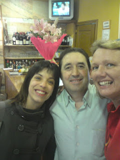 Gisteren na mijn siësta op naar het terras voor een colaatje en wie staan er in de bar: de twee Noorse dames, Inger en Layla!! Ze hebben het toch gehaald en ja, er was ook nog een kamer voor ze.