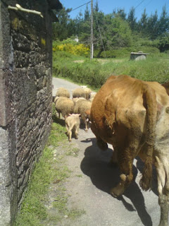 Onderweg nu al meerdere mensen gesproken die de Camino al eerder hadden gelopen en ze zeiden dat de Camino hen had gegeven wat ze nodig hadden. Ik begreep dat niet zo goed, tot gisteren. Toen alle hotelletjes vol waren en ik toch opeens werd opgehaald om naar een gezellig kamertje te worden gebracht én gisteravond, toen ik er achter kwam dat het helemaal niet nodig is om direkt door te reizen naar Santiago!! Probleem dus opgelost. De lieve Mw. van het pension heeft voor vannacht een Casa Rural voor mij geboekt in Xan Xordo en morgen in Monte de Goso - dus dan is het nog maar 5 km. lopen op zaterdag. Maar hij komt pas om 17.00 uur aan op het vliegveld, dus misschien ga ik dan maar al prostrerend, alhoewel dat met rugzak op wat lastig wordt en ze dat hier niet gewend zijn. Ik zal wel zien!